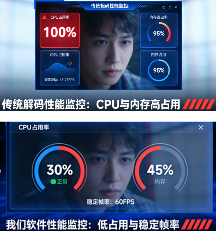 全程GPU硬件加速处理,降低CPU占用率,