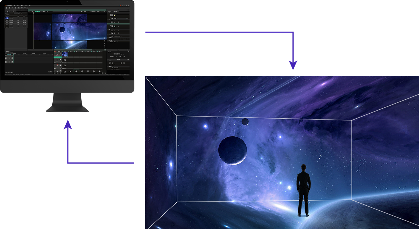 VMEET E2媒体播控系统是针对多窗口、广告播放与权限管理优化的高级多媒体管理平台。主要用于大型屏幕及复杂异形屏幕场景的拼接和同步播控,支持8K硬解码、虚拟屏幕管理等创新技术,轻松实现中大型舞台演出等场景应用。